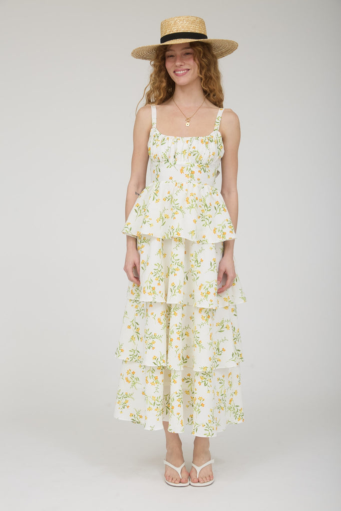 Watercolor Floral Spaghetti Strap Midi Dress
