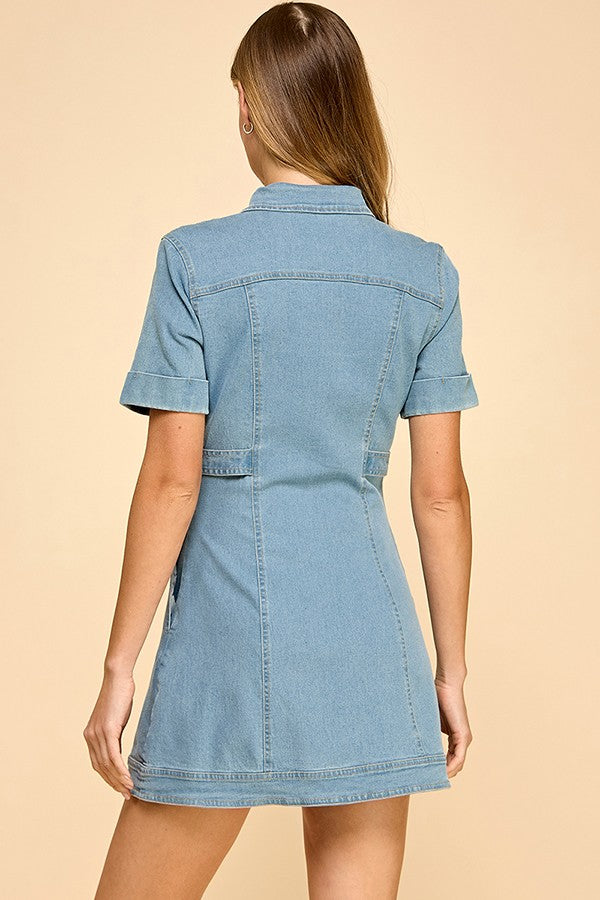 Zipper Front Bubble Sleeve Flare Dress
