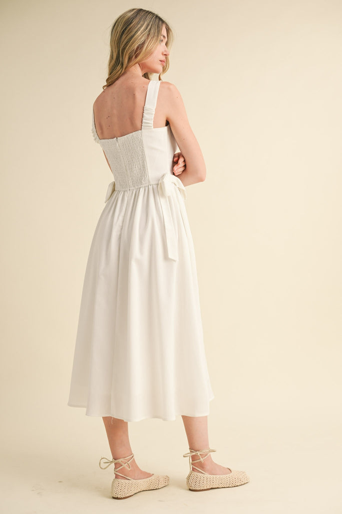 Surplice V necklineFitted Basque waistSmocked elastic back with hidden zipperPocketsLined