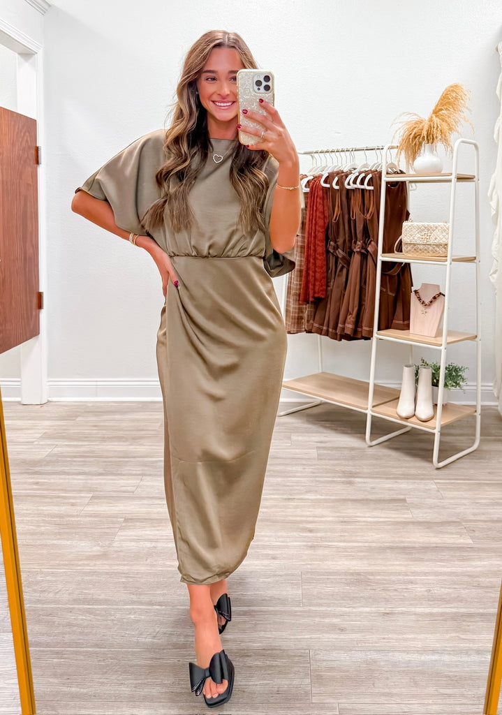 Wide Round Neck Asymmetrical Midi Dress