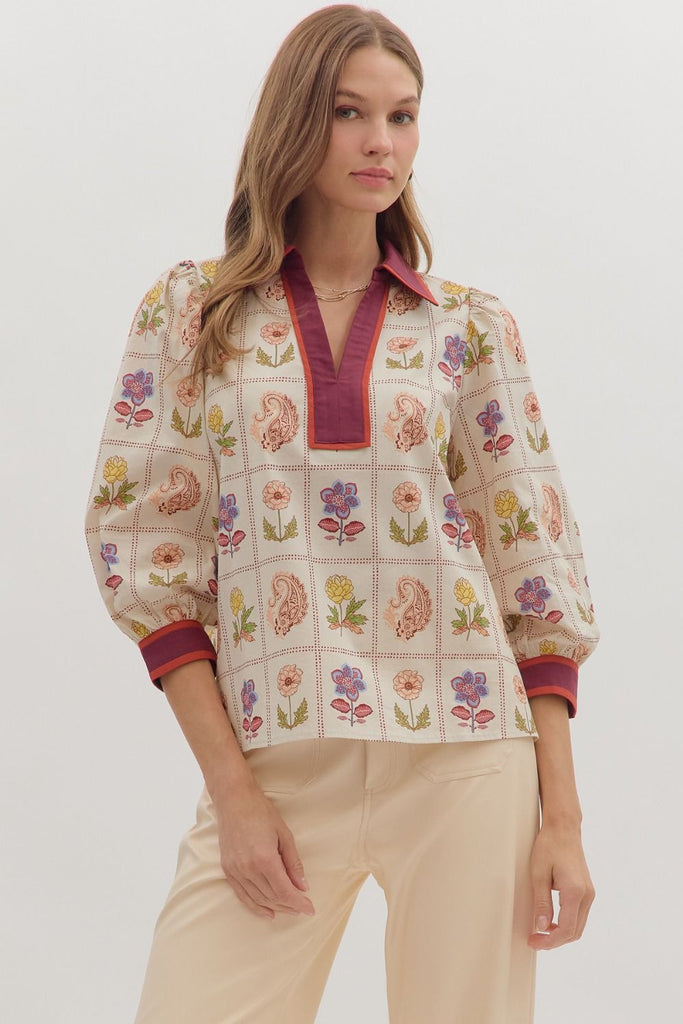 Floral French Terry Rib Sweatshirt