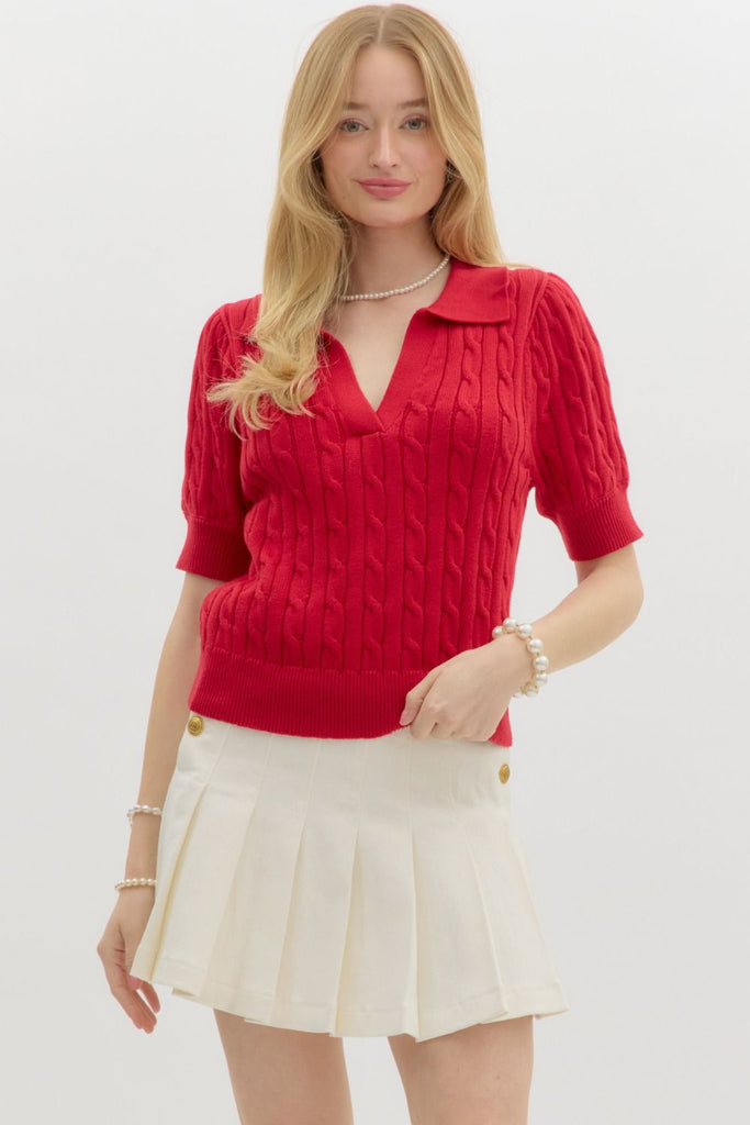 3/4 Puff Sleeve Button Down Collared Top